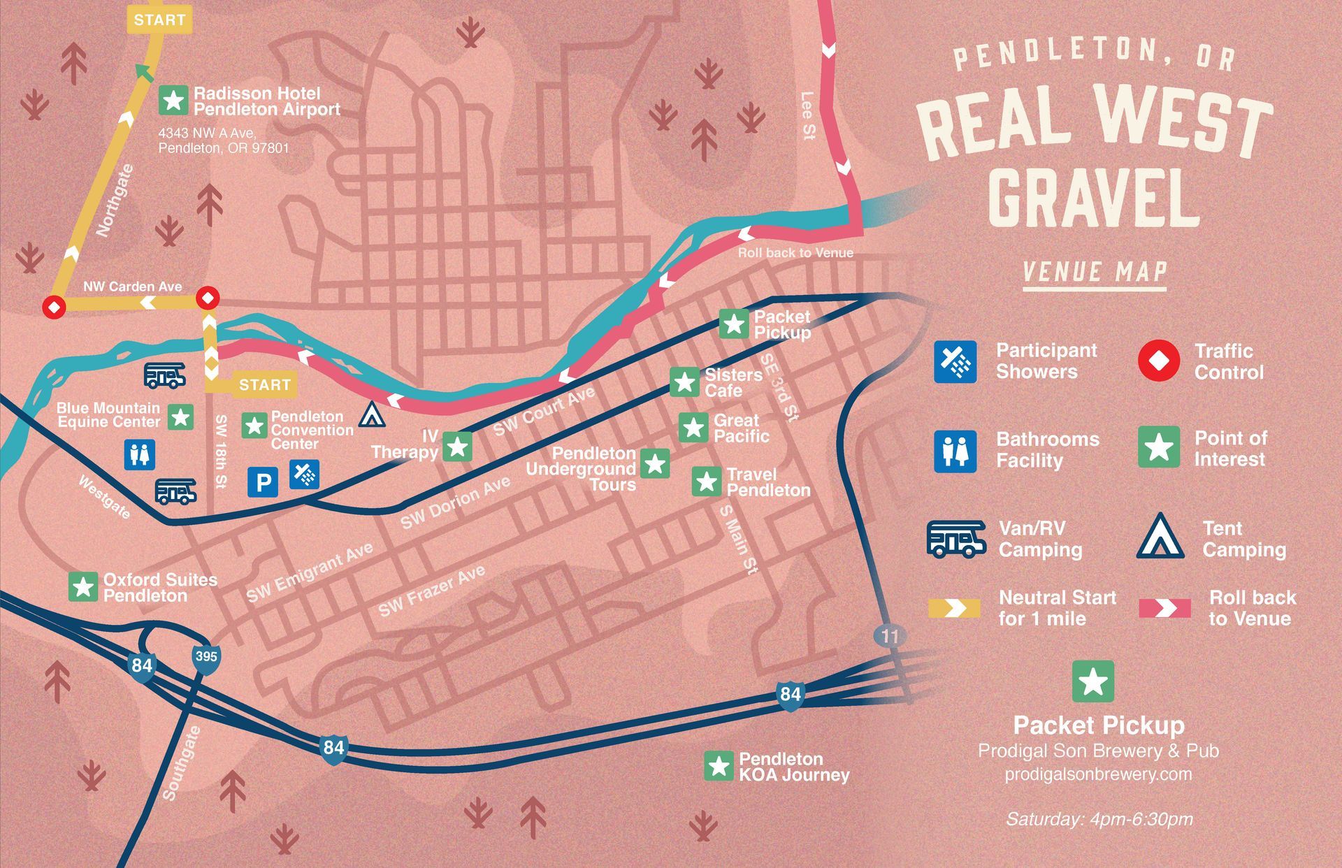 Located just 2.5 miles from the start line, the Radisson Hotel Pendleton Airport combines convenience with comfort. Situated next to the Eastern Oregon Regional Airport, this modern hotel offers amenities to make your stay seamless, including free WiFi, a 24-hour fitness center, and an on-site restaurant open daily from 7:00 AM to 8:00 PM.